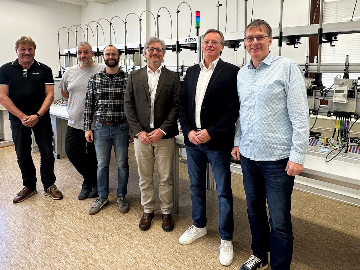 Beim Vor-Ort-Termin am 09. April wurde die neue Zählerprüfanlage in der Prüfstelle ESL3 in Merzig offiziell freigegeben. Von links: Markus Barthel (stv. Leiter der Prüfstelle ESL3), die Prüfstellen-Mitarbeiter Christian Blank und Alexander Seger, Thomas Baltes (Fachbereichsleiter Mess- und Eichwesen des LUA Saarland), Volker Schirra (Geschäftsführer), Frank Wolf (Leiter der Prüfstelle ESL3).